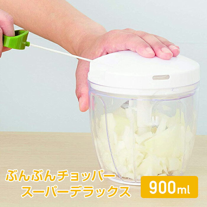 みじん切りにしたいものを軽く切って容器に入れ、紐を引くと中の刃が回転して細かくしてくれる調理器具です。